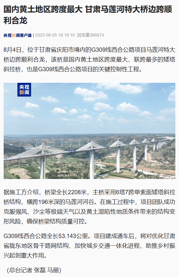 - 甘肅工程咨詢集團(tuán)監(jiān)理項(xiàng)目取得重大突破:國(guó)內(nèi)黃土地區(qū)跨度最大 甘肅馬蓮河特大橋邊跨順利合龍
